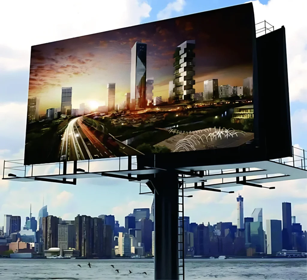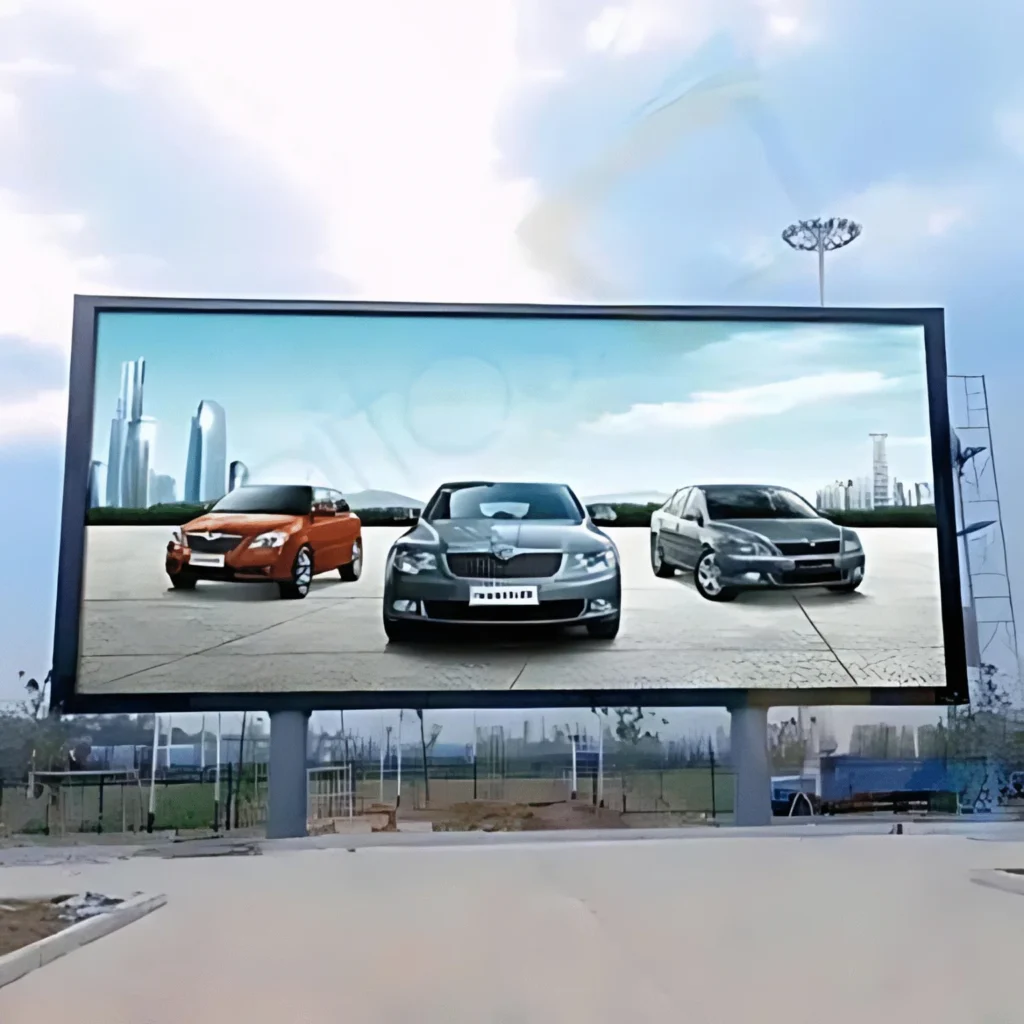 Built to withstand harsh weather, this high-brightness outdoor LED display ensures visibility in sunlight and durability for advertising.